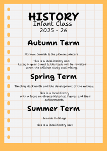 To ensure high standards of teaching and learning in history, we implement a curriculum that is progressive throughout the whole school. History is taught as part of a termly topic, focusing on knowledge and skills stated in the National Curriculum. Our school Key Knowledge objectives are a minimum requirement for learning objectives and are also used to assess the children each term. Teacher’s short term planning should use these objectives to plan a progressive series of lessons which includes the skills and knowledge together to develop the children’s history ability.